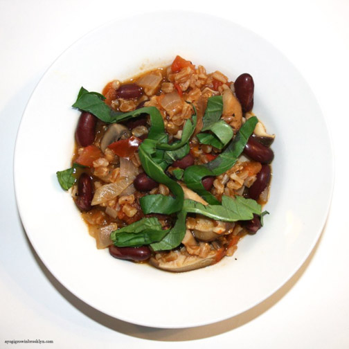 Farro is a cultivated whole grain that is loaded with fiber and protein (particularly for a grain.) Consider substituting farro for pasta in one of your favorite meals. Farro Mushroom Stew Ingredients: 1 cup- whole farro, 2- large tomatoes (diced), 1- onion (diced), 1 cup- portobello mushrooms (chopped), 1 can of kidney beans (rinsed and drained), 4 garlic cloves (minced), 2 tbsp- olive oil, 1 cup- vegetable stock, 2 cups- water, 1 tbsp- chile powder, 1 tbsp- pepper, 1/3 cup- basil (chopped), salt- to taste (keep it light.) -Rinse farro in cold water under sink in a sieve to clean and remove any debris. Bon Appetit! |