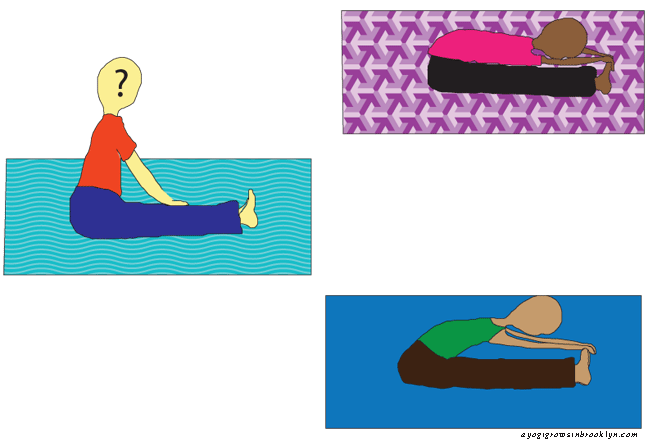 In a yoga class, it's not uncommon to look at what other students in the class are doing. Sometimes we look at others for cues on what to do because we didn't see, hear or understand the instruction of the teacher. I think that's natural. However, when we look at others in their practice, it can create a dynamic where we begin to compare ourselves (capabilities and appearance) to others in the class and perhaps judge ourselves harshly if we don't appear to be as "advanced" as others. And sometimes you might feel self-conscious, like others in the class are looking at you, judging you based on how you look in your practice or in a specific pose. I operate by a golden rule; "mind your own mat" meaning that I try to keep my attention and mind focused on my own practice. The moment you begin focusing and comparing yourself to someone else while in class, you're no longer "present" in your practice and you're cheating yourself. Once you're aware of this, bring your focus back to "your" practice. And if a feeling pops up that others are judging you, rest assured that 99% of the people in the class are focused on their own practice and not paying attention to anyone but themselves. shanti. |